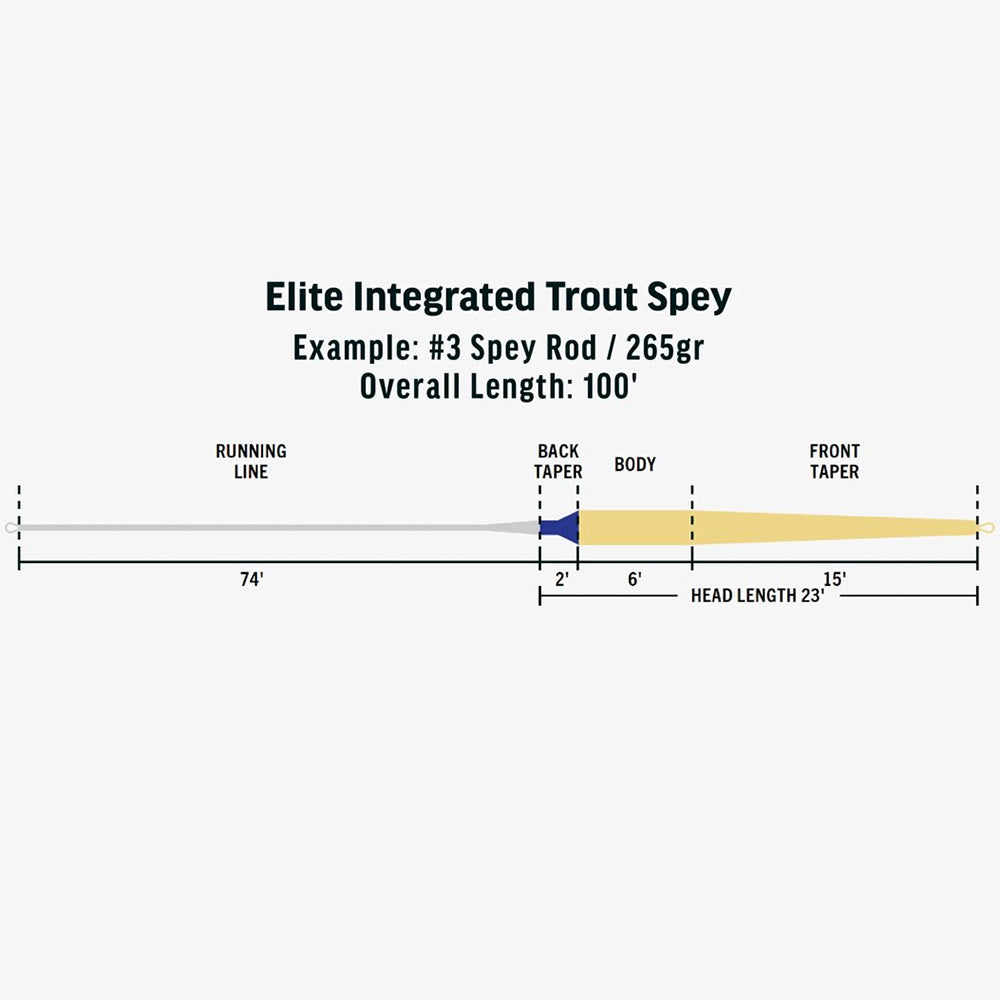 RIO ELITE TROUT SPEY INTEGRATED coda Spey a testa corta, molto facile da lanciare, ideale per pescatori che utilizzano canne leggere da trota Spey a due mani e normali canne da mosca a una mano (basta controllare il peso dei grani per verificare la corrispondenza). Ogni coda è realizzata con il ConnectCore Plus di RIO a bassissimo allungamento per la massima sensibilità e presenta un filo scorrevole perfettamente integrato per una maggiore facilità d'uso. Ogni coda è realizzata con SlickCast, il rivestimento più liscio e resistente sul mercato. I pescatori possono montare terminali standard, pumte di ricambio da 3 metri o Trout VersiLeaders sulla parte anteriore, rendendo queste code perfette per hackle morbide e/o piccoli streamer.