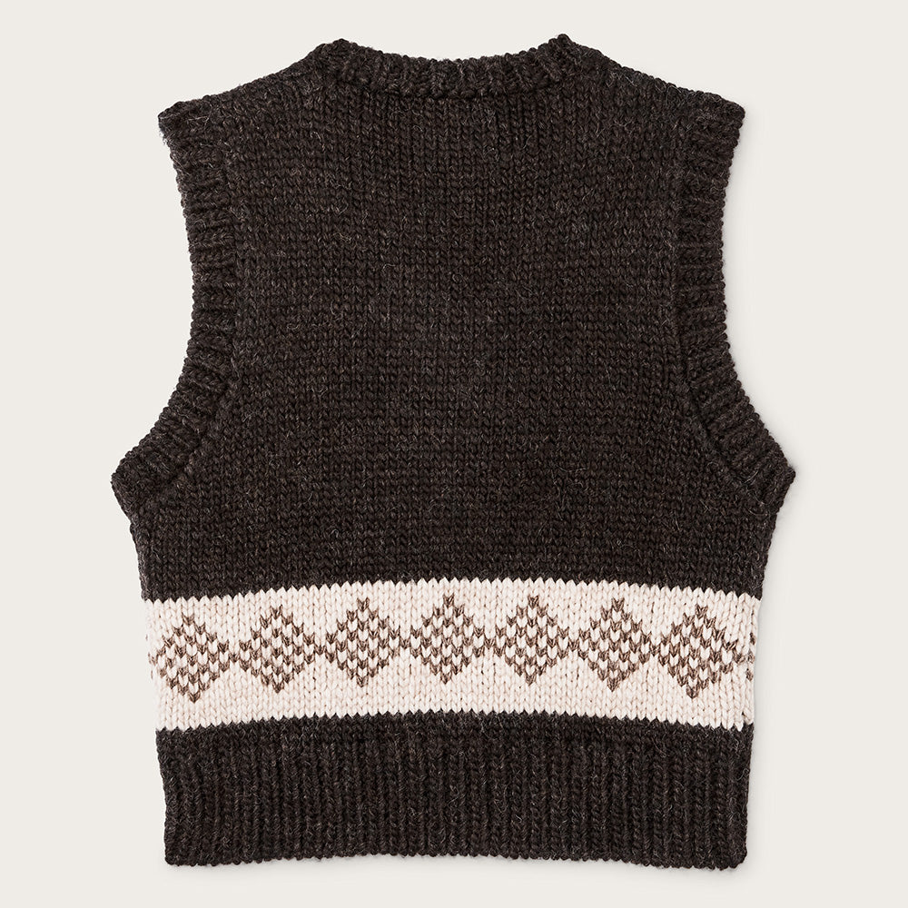 Il gilet Filson da donna in lana combina il meglio di tre mondi in un unico materiale. È lavorato a maglia con filati composti per il 45% da lana per un calore durevole, per il 30% da acrilico per facilitarne la manutenzione e per il 25% da alpaca per una morbidezza straordinaria. Sarà impossibile trovare un capo più comodo e affidabile per riscaldare la parte centrale del corpo. Il giromanica, l'orlo e la scollatura a V a coste offrono una vestibilità comoda e mantengono bene la forma. Dettagliato motivo floreale lavorato a maglia in vita. Chiusura frontale con cerniera.